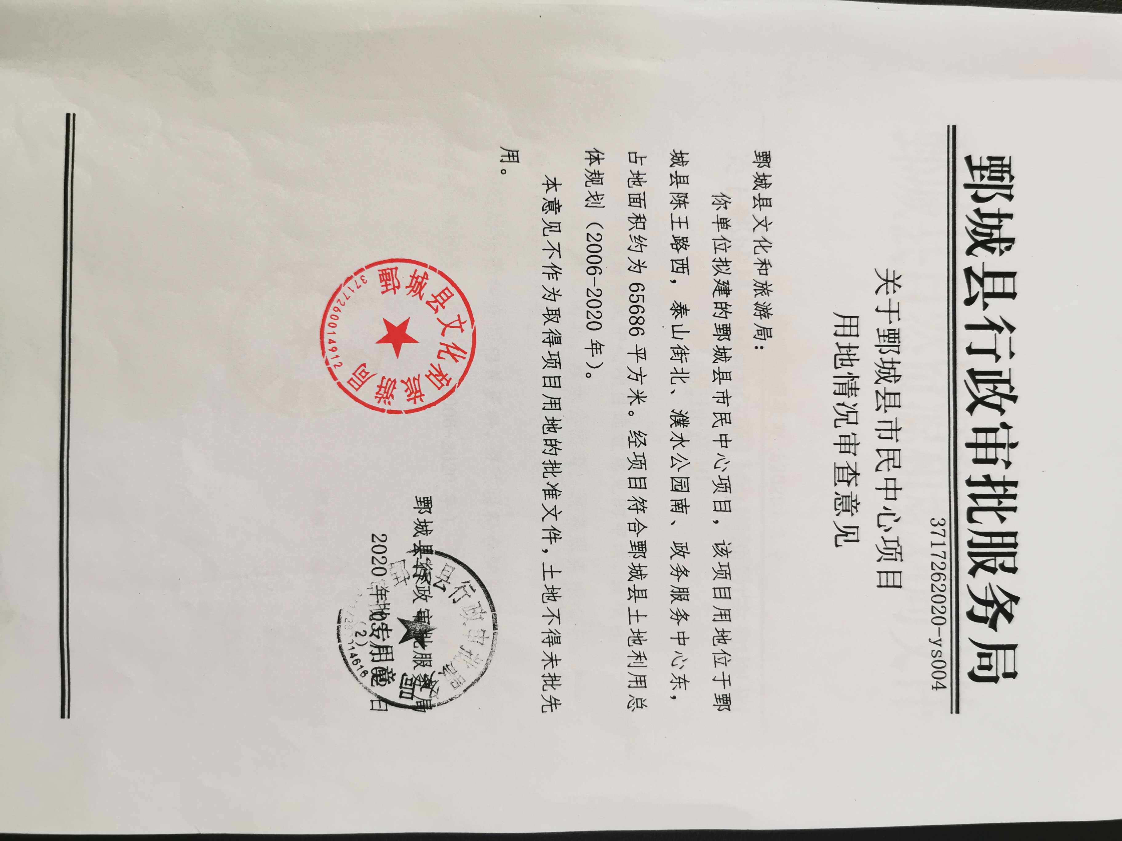 - 标 题:关于鄄城县市民中心项目用地情况审查意见