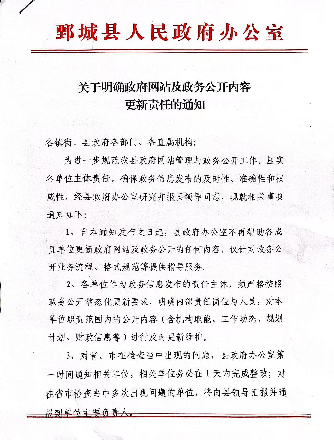 最后政务公开科尚士成同志宣读了《鄄城县人民政府办公室关于明确政府网站及政务公开内容更新责任的通知》,进一步压实各单位主体责任,确保政务公开内容及时、准确、全面。同时,对高质量发展考核中政务公开部分的考核标准进行了详细解读,明确考核指标与评分细则,引导各单位以考核为导向,切实提升政务公开工作质量。