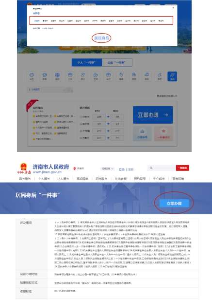 1.在“爱山东”政务服务网推荐宣传栏“高效办成一件事专区”找到“身后”,点击“立即办理”进入办理界面,或直接在“搜索”栏直接搜索“身后一件事”进入办理界面。