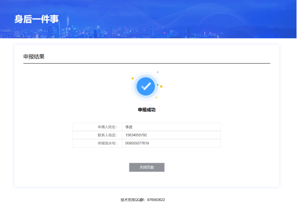 8.申报完成后,系统会跳转到下方的提示页面,显示“申报成功”。