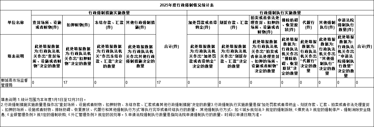 - 标 题:鄄城县市场监督管理局2025年度行政执法情况