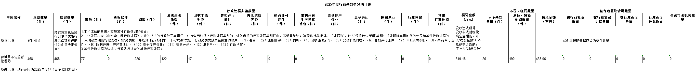 | 内容概述: | 鄄城县市场监督管理局2025年度行政执法情况 | ||