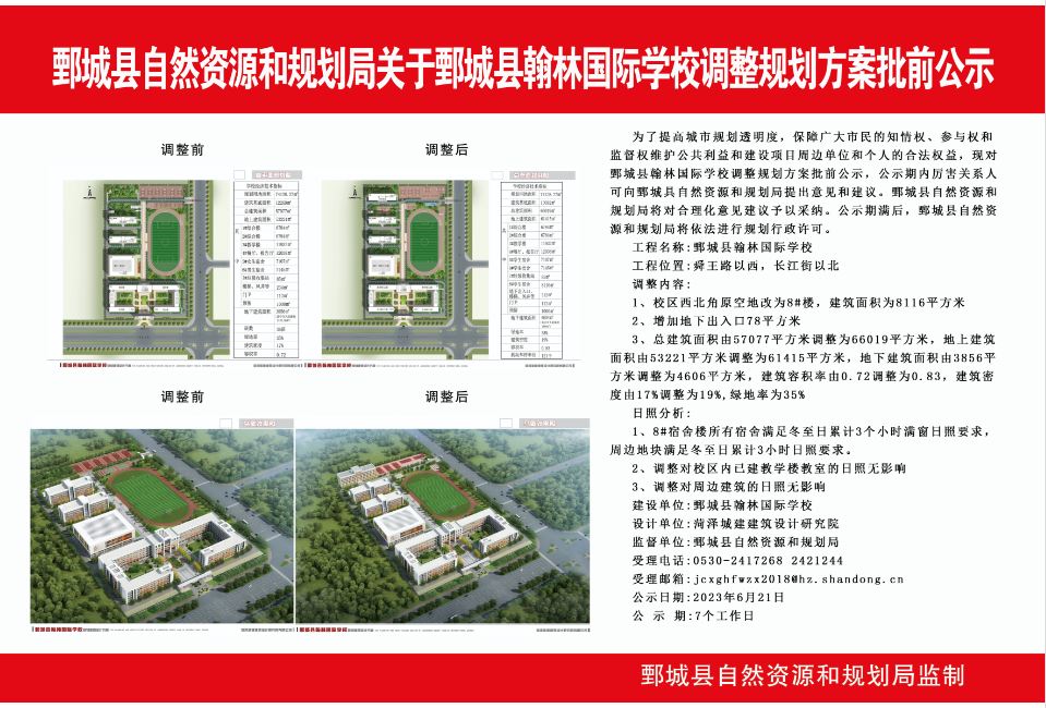 鄄城县自然资源和规划局关于翰林国际学校调整规划方案批前公示