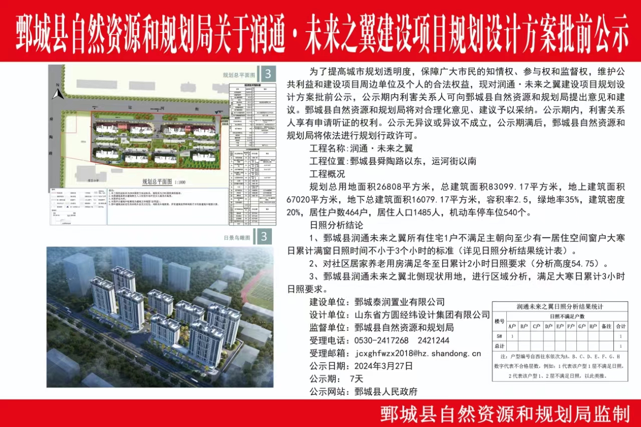 鄄城县自然资源和规划局关于润通·未来之翼建设项目规划设计方案批前公示