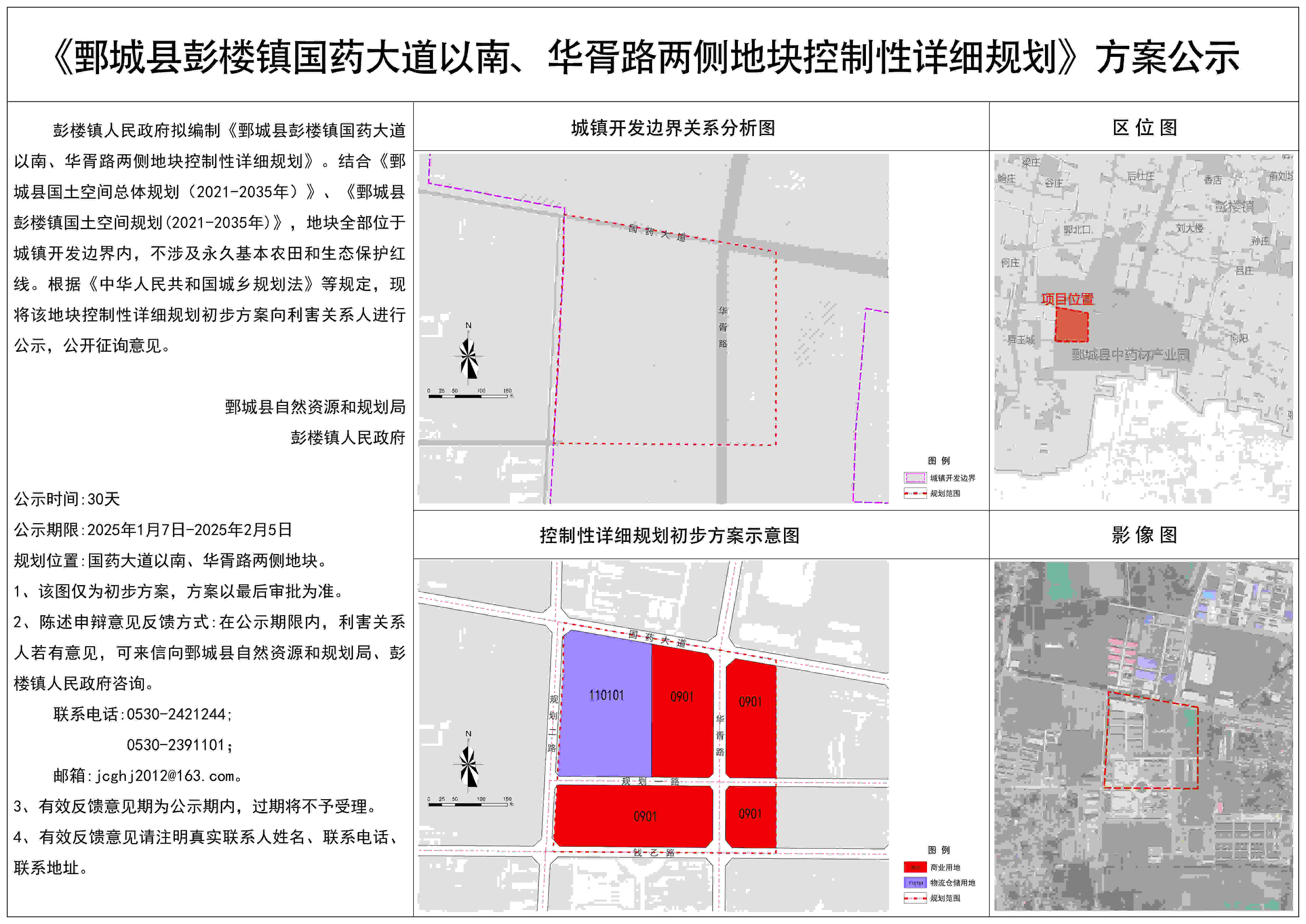 《鄄城县彭楼镇国药大道以南,华胥路两侧地块控制性详细规划》方案公示