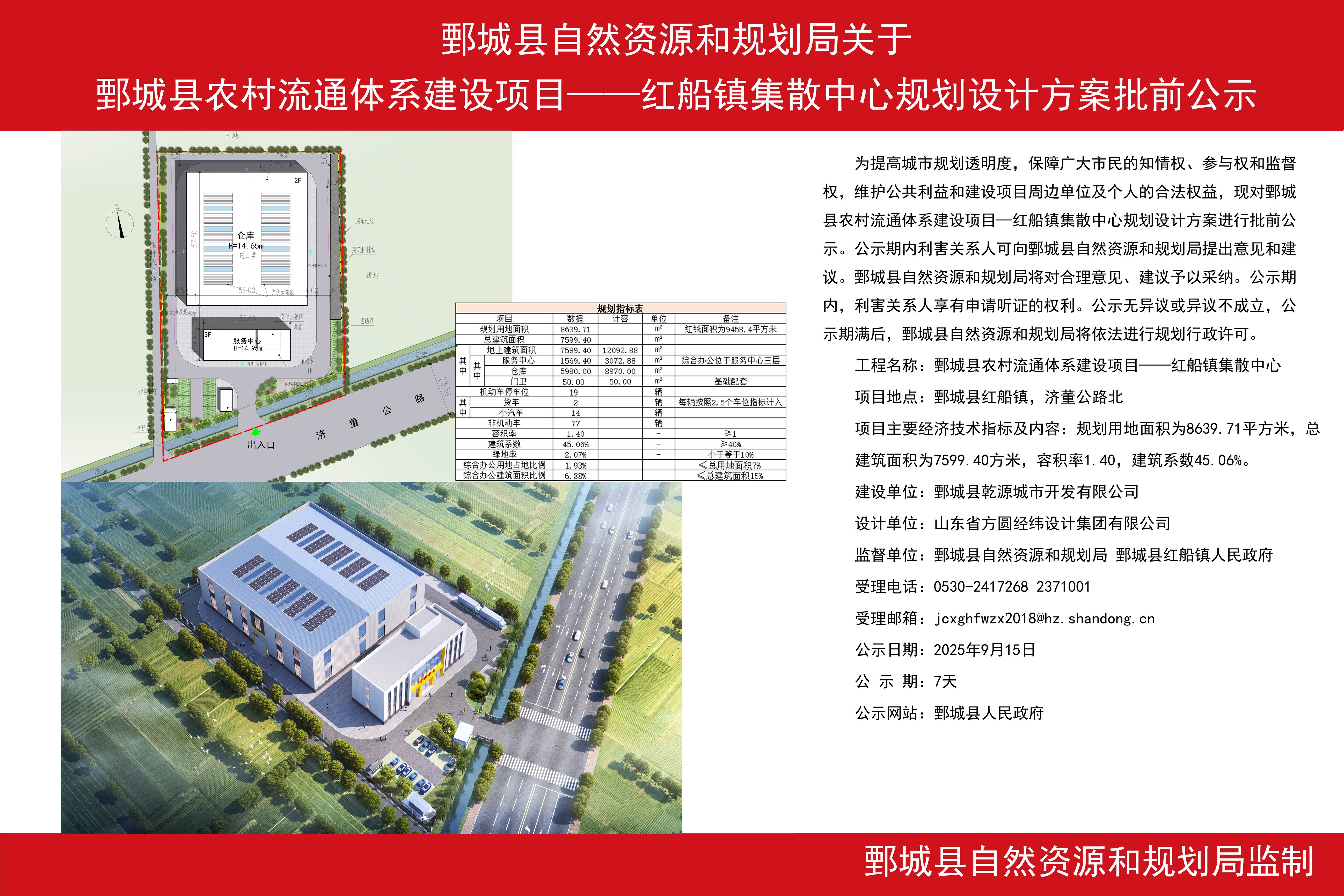 鄄城县自然资源和规划局关于鄄城县农村流通体系建设项目——红船镇集散中心规划设计方案批前公示