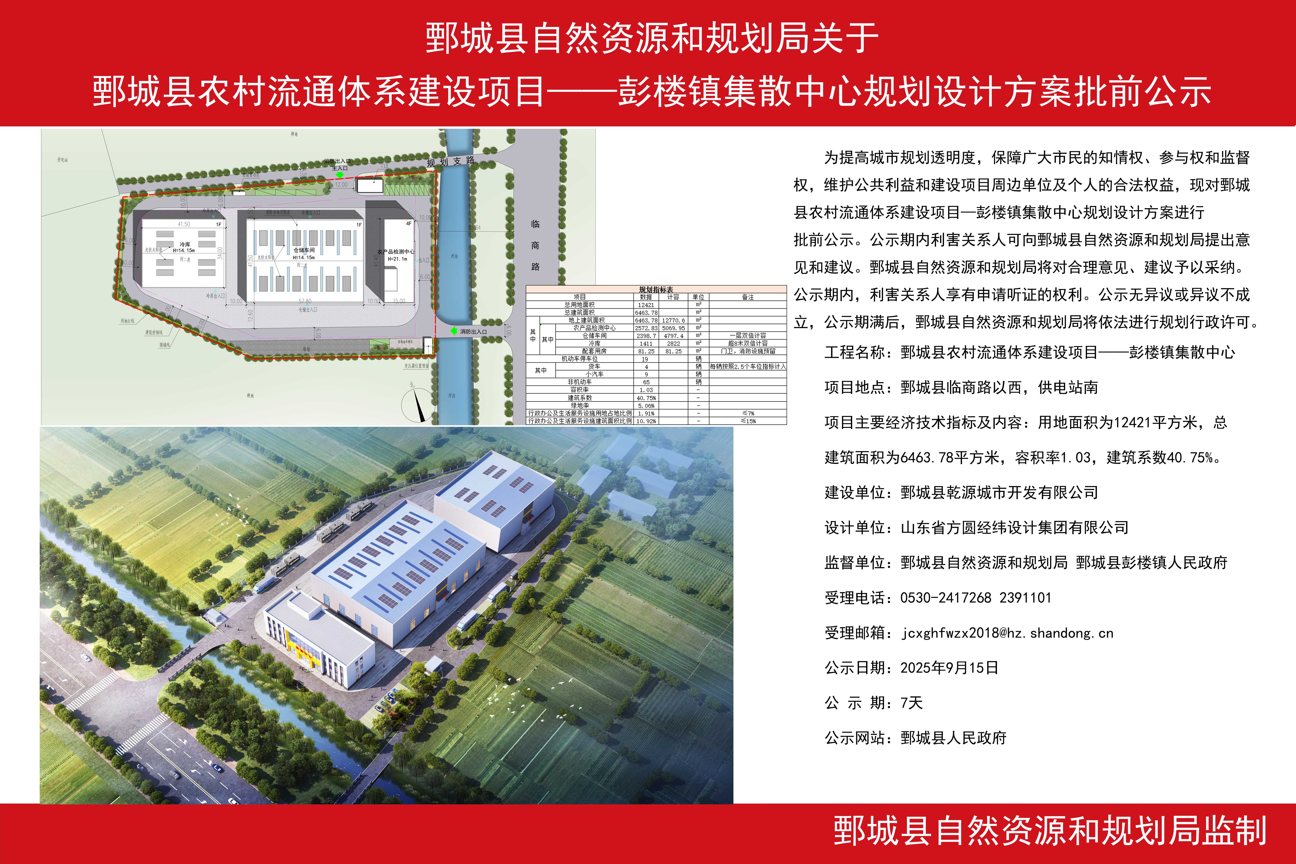 鄄城县自然资源和规划局关于鄄城县农村流通体系建设项目——彭楼镇集散中心规划设计方案批前公示