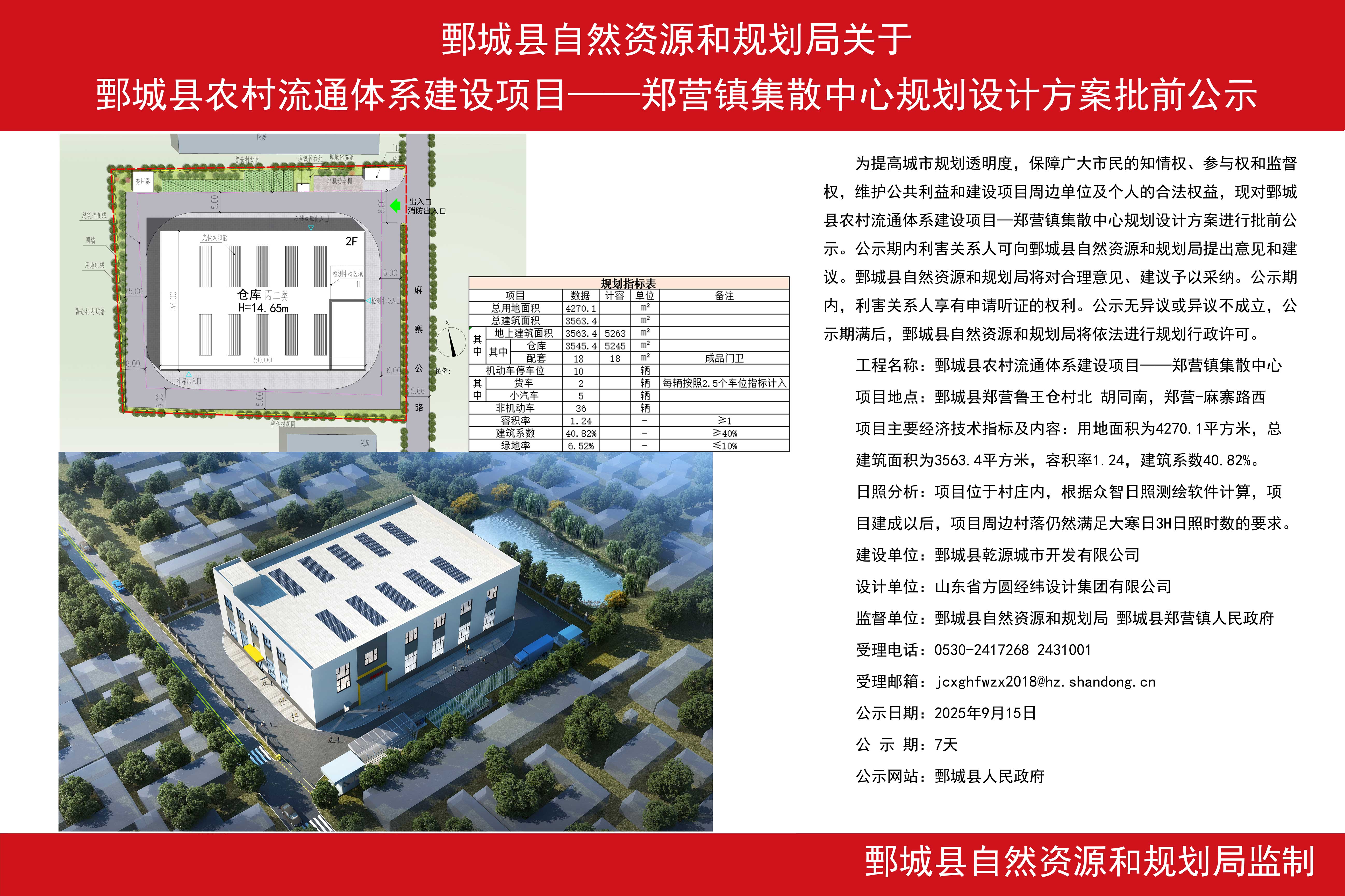 鄄城县自然资源和规划局关于鄄城县农村流通体系建设项目——郑营镇集散中心规划设计方案批前公示