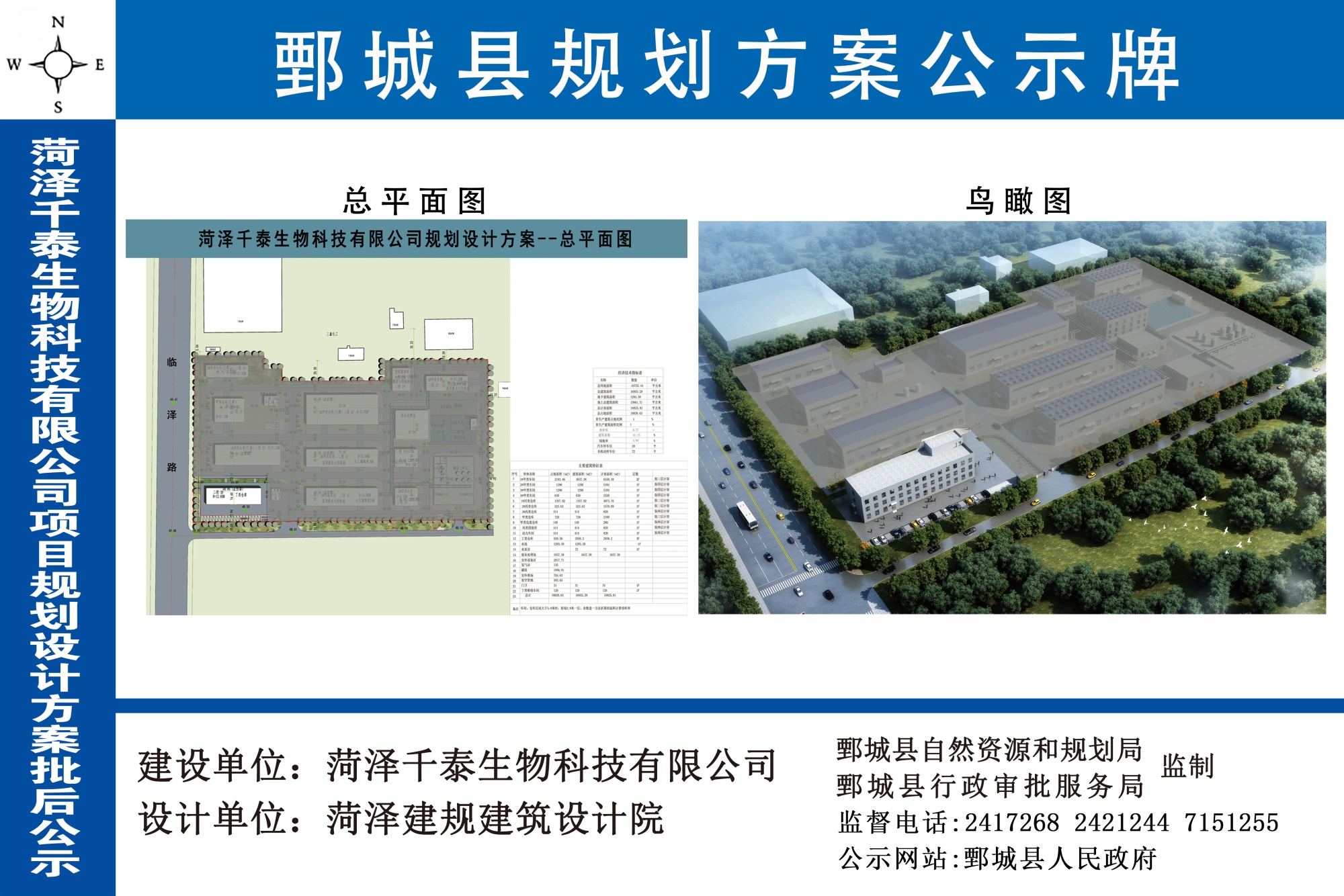 鄄城县自然资源和规划局关于千泰生物科技有限公司建设项目规划设计方案批后公示