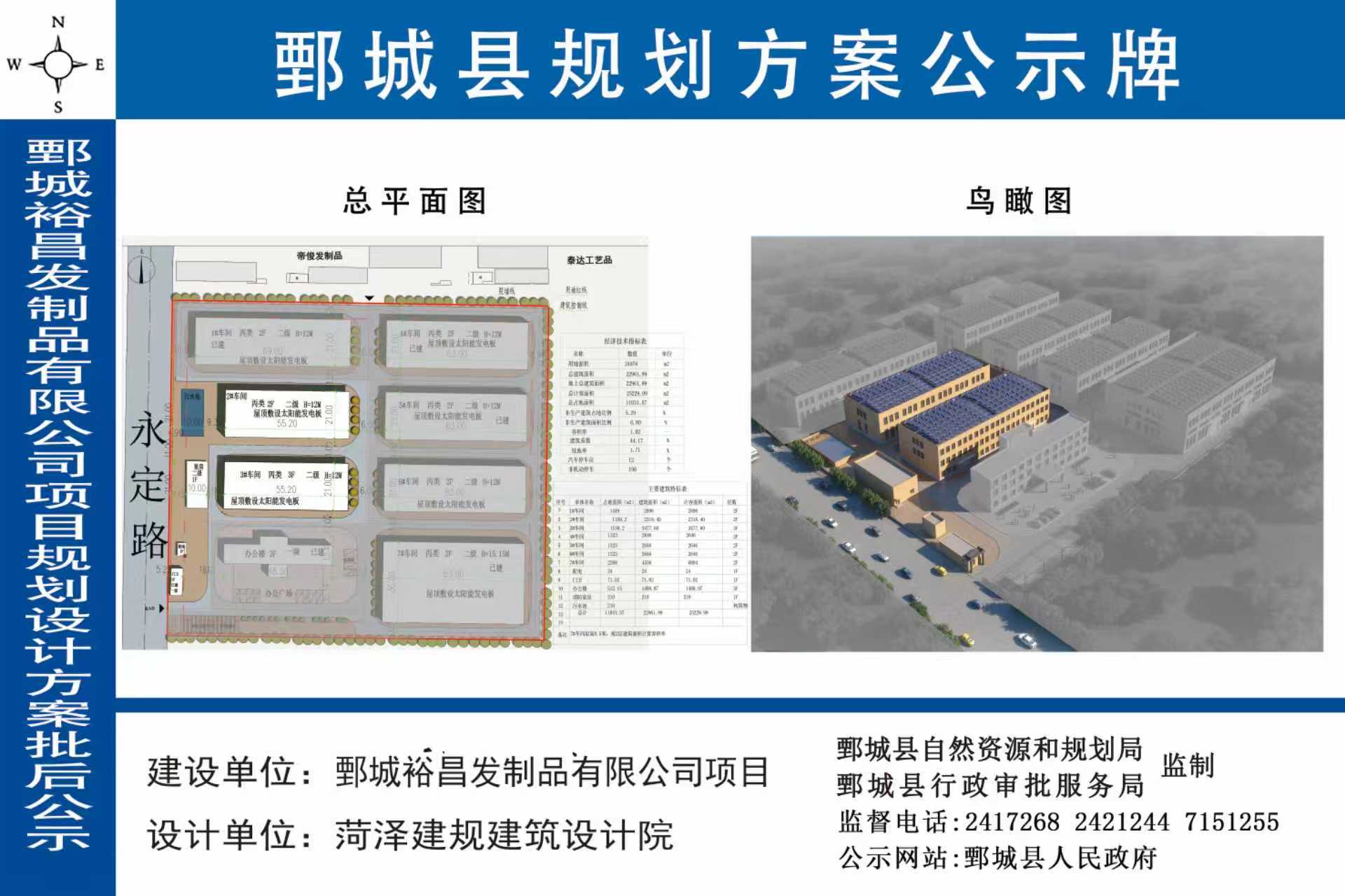 鄄城县自然资源和规划局关于鄄城裕昌发制品有限公司项目规划设计方案批后公示