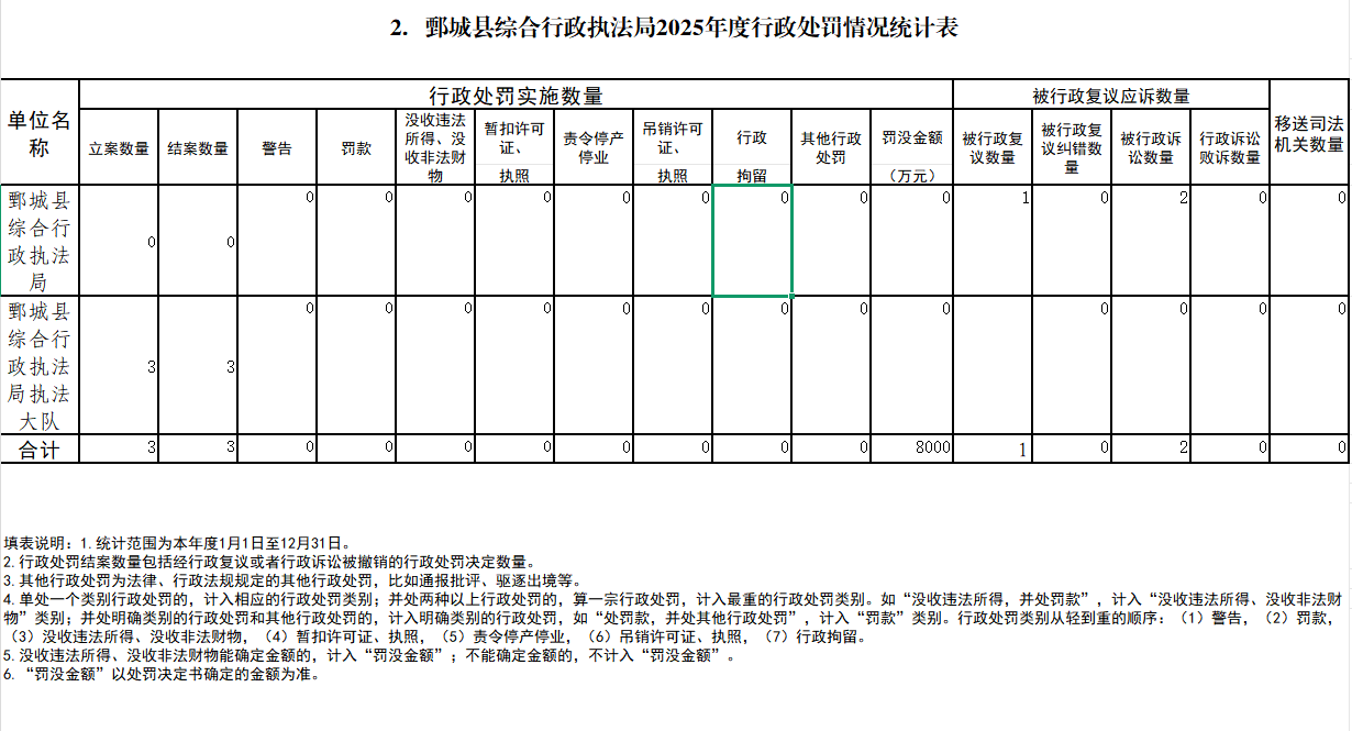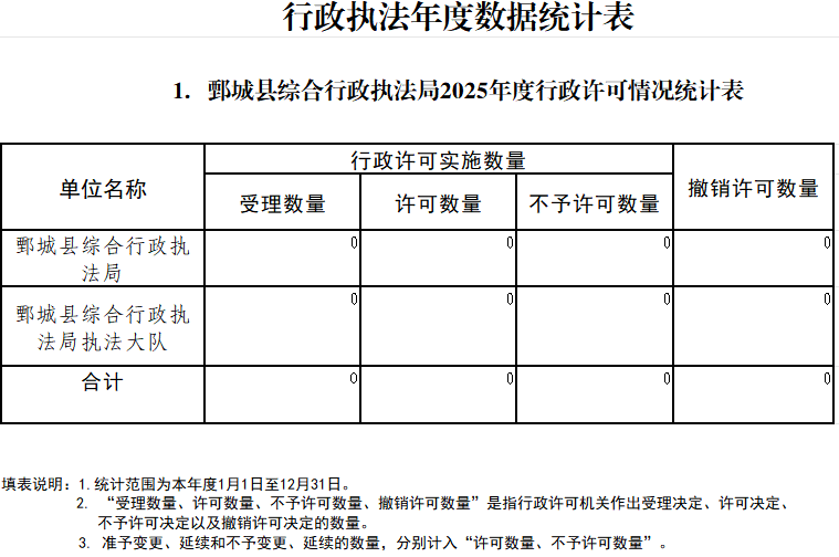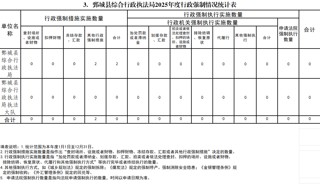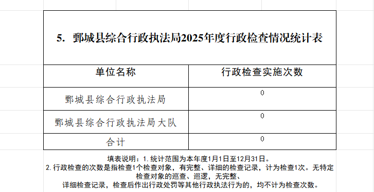 - 标 题:鄄城县综合行政执法局2025年度行政执法总体情况
